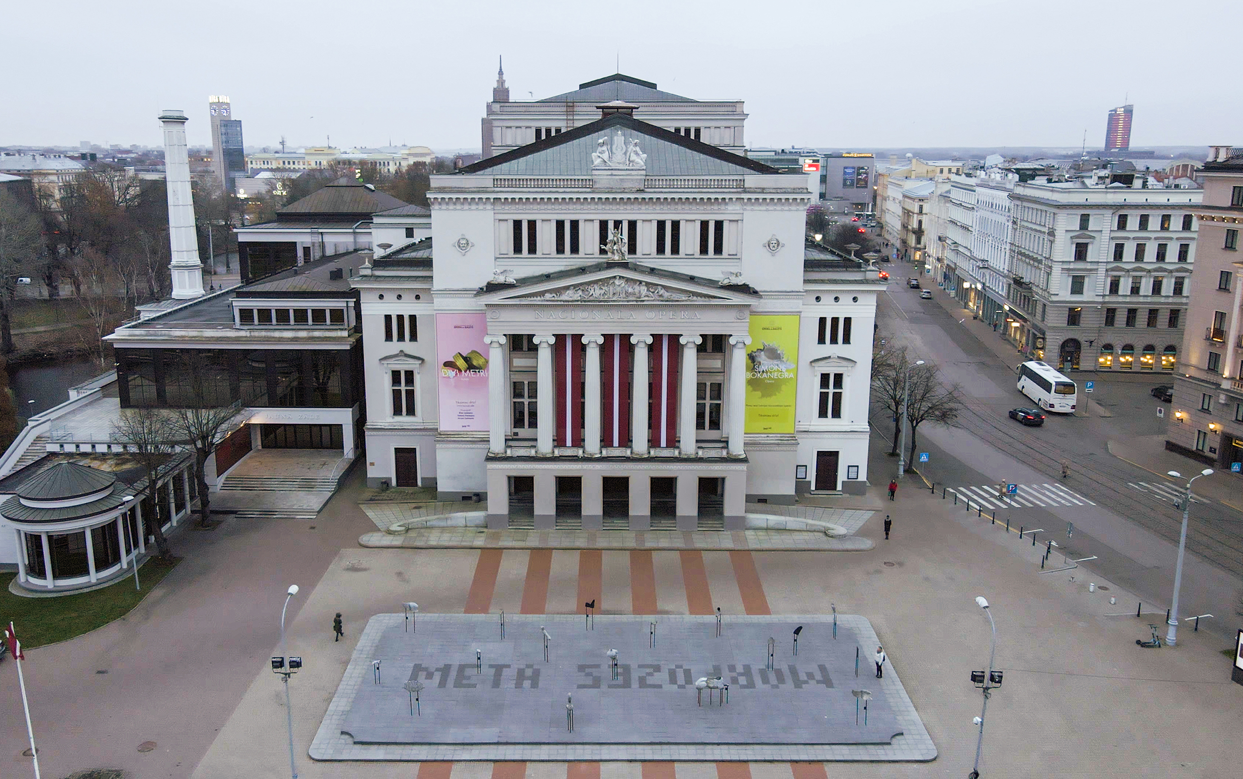 Skats uz Latvijas Nacionālo operu 2020. gada 16. novembrī (aerofoto: Jānis Ķeris).